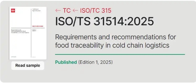 2025年11月4日,由中国联合新加坡共同牵头制定的《冷链物流中食品可追溯性的要求和建议》(ISO/TS 31514:2025)正式由国际标准化组织(ISO)发布。