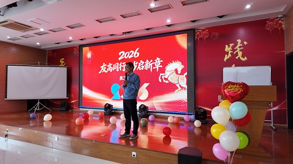 作为合肥友高的当家人,总经理陈文正先生上台致辞并送上了诚挚的慰问与衷心的祝福。并以长者的身份,他从工作、生活以及对社会、家庭等方面分享了一些宝贵的人生经验,并鼓励大家不断学习,每天进步一点点,不断成长。